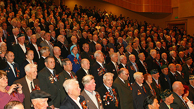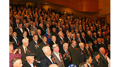 Сегодня в уфимском Конгресс-холле состоялся торжественный вечер для ветеранов Великой Отечественной войны и тружеников тыла, посвященный 65-й годовщине Великой Победы советского народа. Его первой частью стал праздничный концерт, подготовленный лучшими творческими коллективами и мастерами искусств республики. Перед началом концерта к приглашенным обратился с приветствием Президент Республики Башкортостан Муртаза Рахимов, сердечно поздравивший ветеранов с этим поистине всенародным праздником!