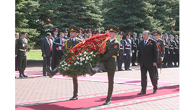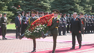 На входе в парк Президента встречали руководители министерств и ведомств, администрации Уфы, депутаты, ветераны, представители молодежных и общественных организаций. После доклада начальника почетного караула под звуки "Грез" Шумана, исполняемых духовым оркестром, Президент Башкортостана Муртаза Рахимов возложил к Вечному огню венок, символизирующий дань памяти от многонационального народа республики павшим в Великой Отечественной войне. Затем к Вечному огню возложили цветы Председатель Госсобрания РБ Константин Толкачев и Премьер-министр Правительства РБ Раиль Сарбаев.