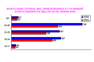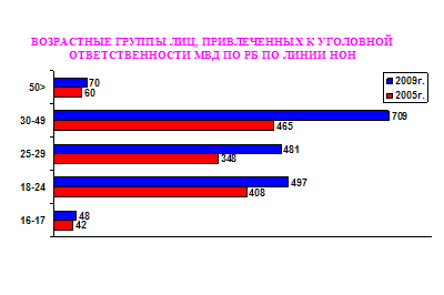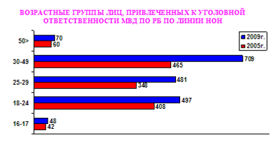 Количество лиц, задержанных за преступления в сфере НОН, возросло с 1323 человек в 2005 году до 1805 – в 2009 году. Преобладающая их масса (около 80%) находится в возрасте от 18 до 35 лет. Это самая трудоспособная часть населения.