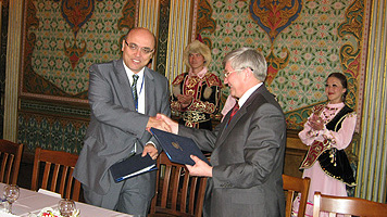Сегодня в рамках Дней науки и культуры Башкортостана в Стамбуле в Стамбульском университете открылась Международная научно-практическая конференция "История и культура народов Европы: прошлое, настоящее, будущее", посвященная 120-летнему юбилею Ахмет-Заки Валиди. Перед началом научного форума члены официальной делегации Башкортостана во главе с заместителем Премьер-министра Правительства, министром культуры и национальной политики РБ Ильдусом Илишевым осмотрели развернутую в фойе университета выставку, посвященную 120-летию выдающегося ученого и общественного деятеля, нашего соотечественника Ахмет-Заки Валиди Тогана. Затем состоялась церемония подписания Соглашения о сотрудничестве между Башкирским государственным университетом и Стамбульским университетом. Документ подписали ректор БашГУ Ахат Мустафин и ректор Стамбульского университета Юнус Сойлет.