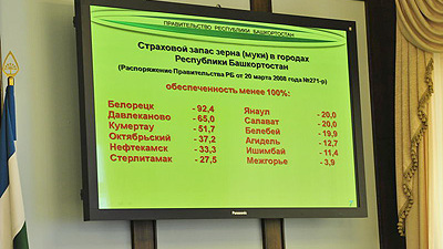 В Башкортостане всегда большое внимание уделялось продовольственной безопасности и социальной защите населения. Согласно Постановлению Правительства от 20 марта 2008 года, во всех крупных городах имеется страховой запас зерна. По последней информации администраций городских округов обеспеченность запасами зерна и муки сегодня составляет 74% от пятимесячного уровня.