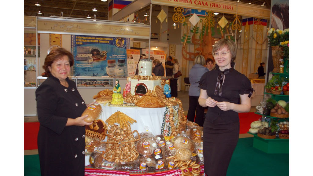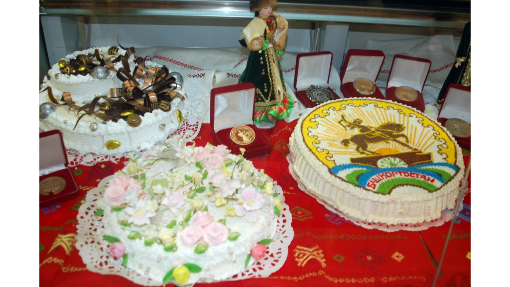 В витринах еще можно разобрать авторство – вот торты от "Пышки", пирожные «Стерха», а на круглом столе в центре экспозиции Башкортостана вся «кондитерка» и хлеба лежат живописной, тщательно продуманной «кучей», изображая своеобразную скатерть-самобранку. Здесь и мармелад, и сушки с баранками, сдоба, сухари, новый суперпышный хлеб «Боккаччо». Работает принцип коллективной подачи - ради экономии выставочной площади и создания полноты картины все лучшее собрали вместе. Венчает композицию чудо-печка с двумя фигурками гостеприимных хозяев, вылепленными из теста и ярко раскрашенными пищевыми красителями. Это творение ОАО «Стерлитамакский хлебокомбинат», на время агронедели ставшее поводом для фотографирования, не оставляет равнодушными детей.
