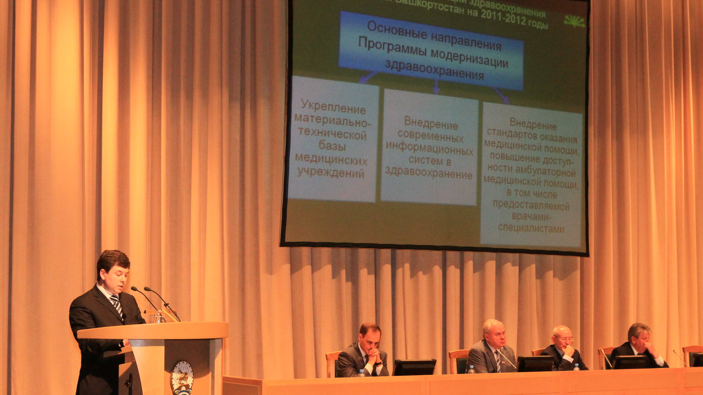 Проблемы модернизации здравоохранения обсудил с представителями медицинской общественности и главами муниципалитетов республики Президент Башкортостана Рустэм Хамитов. Рабочее совещание «Программа модернизации здравоохранения – приоритет республики Башкортостан» состоялось в уфимском Конгресс-холле.
