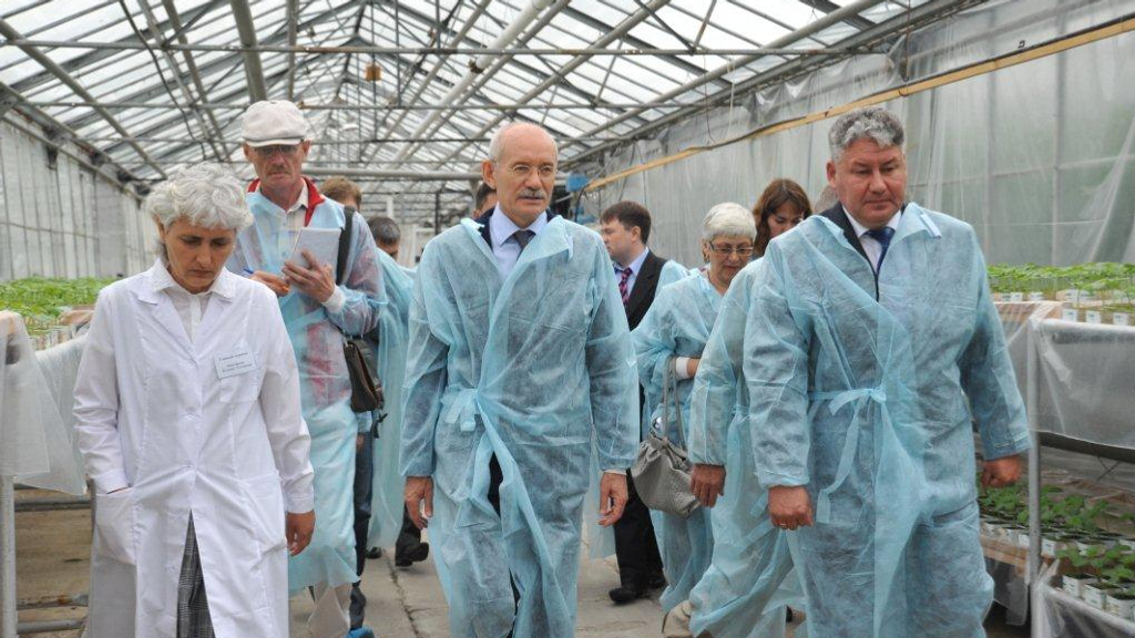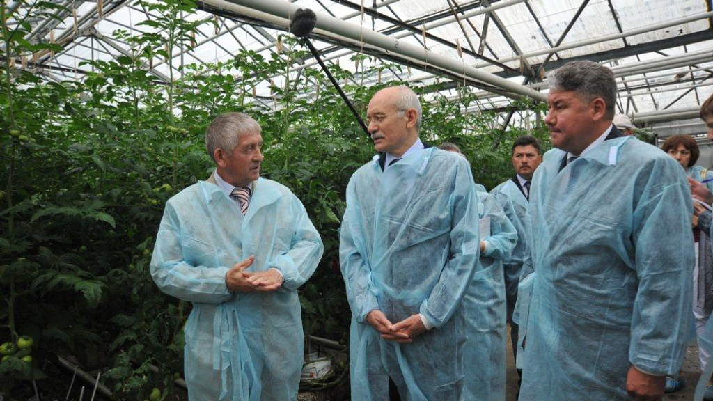 Рустэм Хамитов осмотрел теплицы и продегустировал местные овощи. Президент Башкортостана оценил вкус томатов и отметил, что предприятие достойно звания «Поставщика президентского стола».