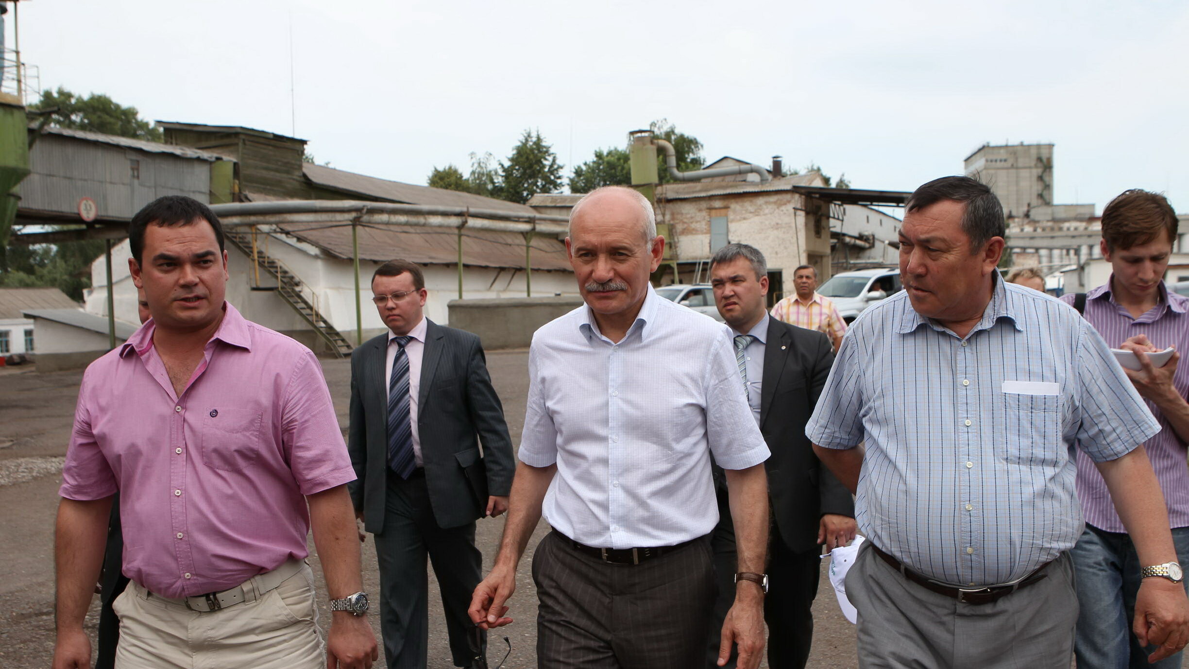 Рустэм Хамитов ознакомился с производственным циклом предприятия, пообщался с работниками. На комбинате решают проблему с обновлением оборудования. Мельница была установлена здесь еще в 1950-1960-е годы, и в ближайшее время будет заменена.