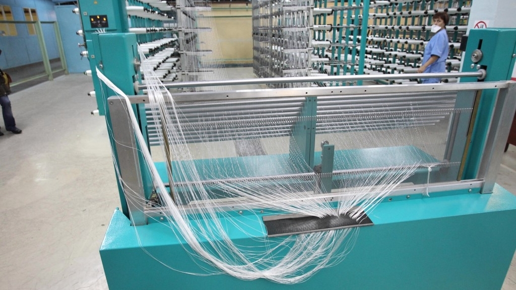 Затем Президент республики посетил ткацкий цех завода, где ознакомился с технологией производства мультиаксиальных тканей. Они используются при изготовлении теплоизоляционных материалов и кровельных покрытий.