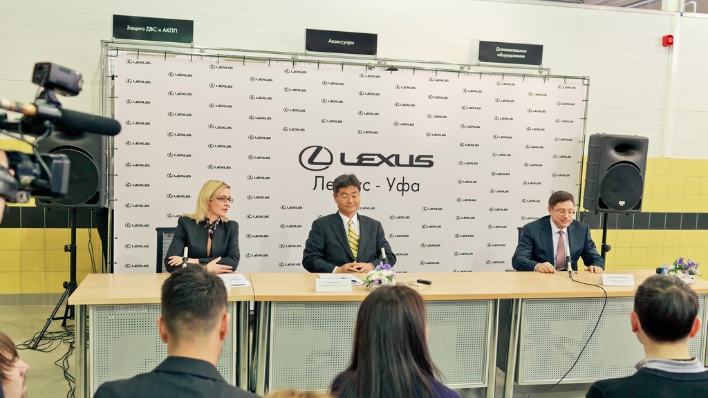 В Уфе состоялось торжественное открытие дилерского центра Лексус. На нем присутствовали глава администрации Уфы Ирек Ялалов, президент ООО «Тойота Мотор» Такеши Исогая и управляющий автосалоном «Лексус-Уфа» Риф Латыпов.