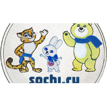Очередная монета в честь Олимпиады-2014 в Сочи появится в обращении 1 ноября. Она выполнена из недрагоценного металла и отличается красочным дизайном. На лицевой стороне монеты обозначен номинал – 25 рублей, на оборотной расположены цветные изображения трех талисманов Игр – Леопарда, Белого медведя и Зайки, а также эмблема Олимпиады.