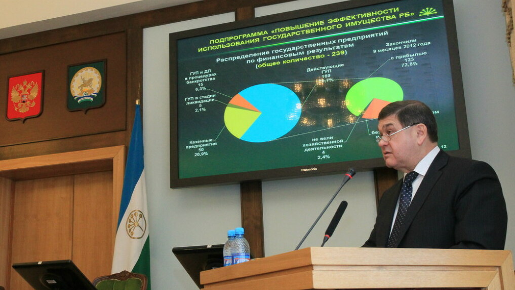 По словам Рустэма Хамитова, в прошлом году от 184 государственных унитарных предприятий республика получила 90 миллионов рублей, в то же время 101 акционерное общество с участием республики за тот же период принесло три миллиарда рублей.