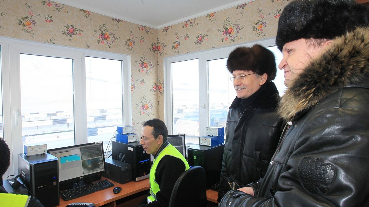 Рустэм Хамитов поинтересовался, почему пункт весового контроля расположился именно на этом месте и достаточен ли грузопоток. По словам специалистов, поток тяжеловесного транспорта на этом участке дороги достаточен: за сутки здесь проезжает около 600 грузовых автомашин. Допустимая масса грузовика зависит от типа машины и количества осей. Сверхнормативную массу водители оплачивают здесь же в кассе.