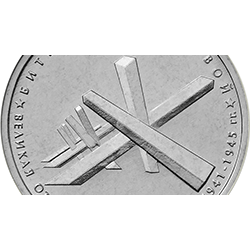 На обороте монеты, посвященной битве под Москвой, выполнено рельефное изображение Монумента защитникам Москвы. На монете памяти участников Сталинградской битвы отчеканен фрагмент мемориала «Героям Сталинградской битвы» на Мамаевом кургане в Волгограде. Третья монета напоминает о героических сражениях за Кавказ - на ее оборотной стороне имеется изображение Монумента защитникам Эльхотовских ворот в селе Эльхотово.