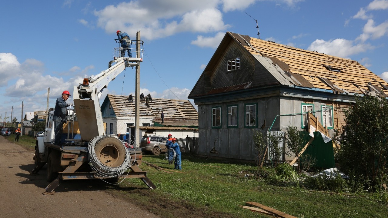 Более 230 опор линий электропередачи повреждено ураганом на севере Башкирии