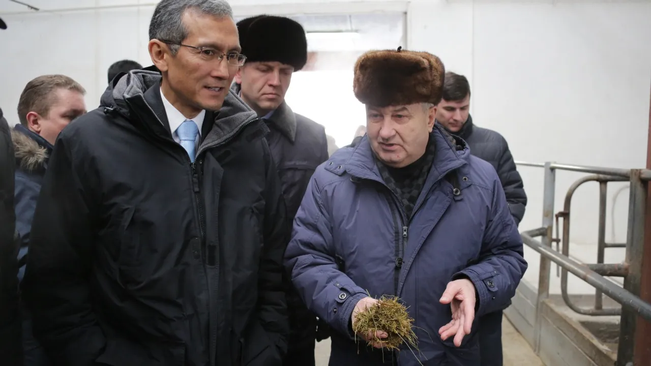 УФА, 3 дек 2014. /ИА «Башинформ», Илья Спиридонов/. Официальная делегация Кыргызстана во главе с Премьер-министром Джоомартом Оторбаевым, посетившая Уфу с рабочим визитом, ознакомилась с работой одного из ведущих сельхозпредприятий Башкортостана – совхоза «Алексеевский».