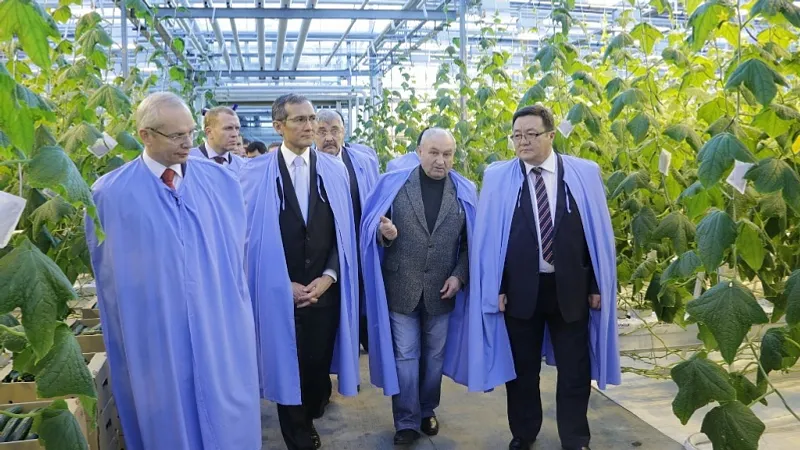 Еще одним объектом осмотра стало тепличное хозяйство, где в закрытом грунте круглогодично производится свыше 14 тысяч тонн овощей, а также свыше 1,5 млн штук зеленых культур в горшочках (салат, петрушка, укроп, базилик, сельдерей). Евгений Майстренко заметил, что в 2010-2011 годах введены в эксплуатацию 4,25 га современных теплиц с котельной, в которых урожайность в 1,5 раза больше, чем в ранее построенных. В настоящее время ведутся работы по строительству новых теплиц площадью 5 га.