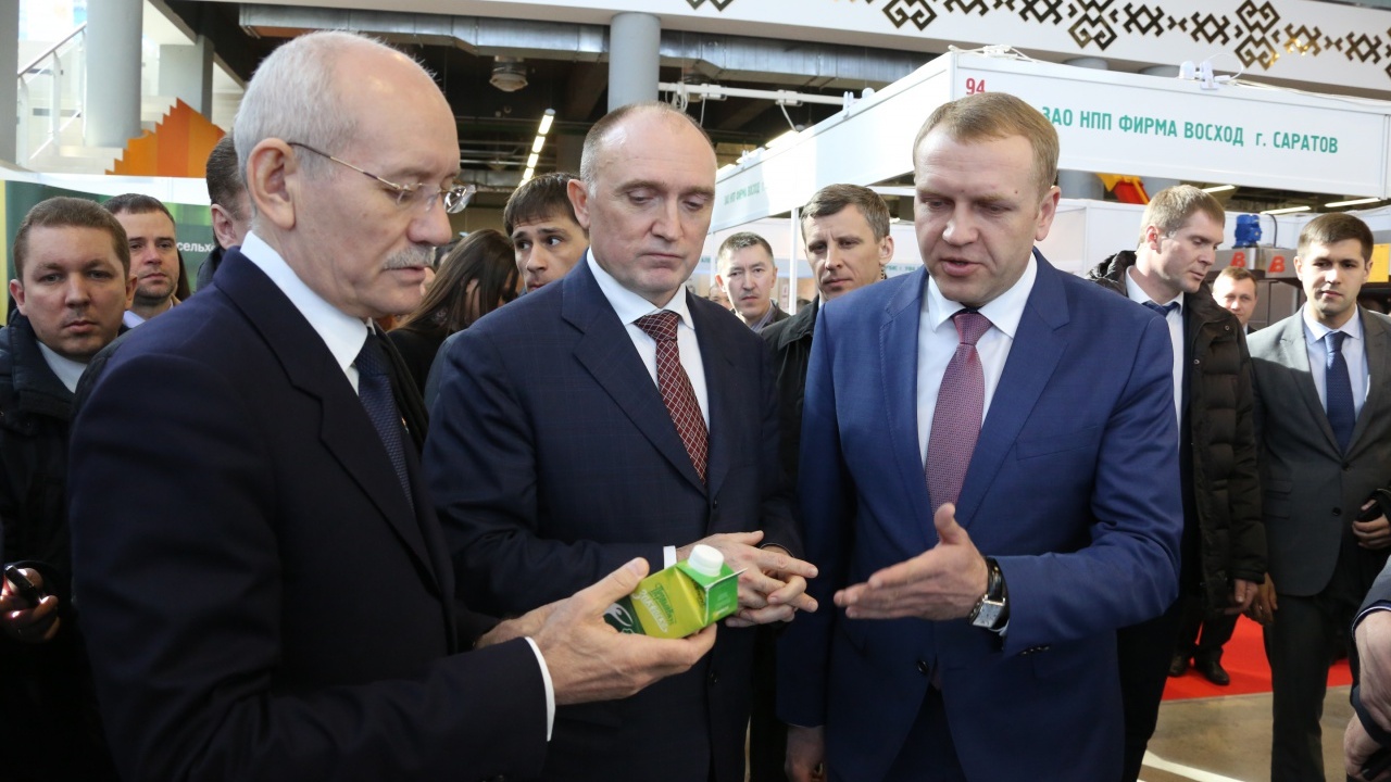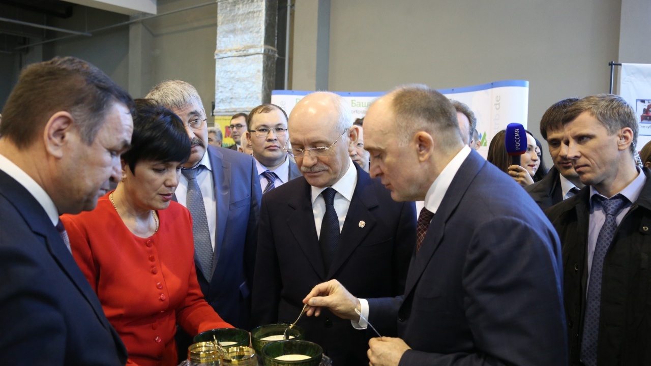 УФА, 20 мар 2015. /ИА «Башинформ», Эльвира Латыпова/. Современную сельхозтехнику и оборудование для аграрного производства и перерабатывающей промышленности, продукцию для нужд растениеводства и животноводства осмотрели на XXV Международной специализированной выставке «АгроКомплекс» в Уфе губернатор Челябинской области Борис Дубровский и глава Башкортостана Рустэм Хамитов. Напомним, делегация Челябинской области