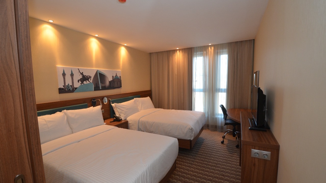 УФА, 28 май 2015. /ИА «Башинформ», Розалия Валеева/. В центре Уфы открылась гостиница Hampton by Hilton Ufa. В отеле - 161 номер, два из них - для людей с ограниченными возможностями здоровья, 108 одноместных, 20 двухместных, 30 семейных номеров. Гостиница соответствует требованиям категории «четыре звезды».