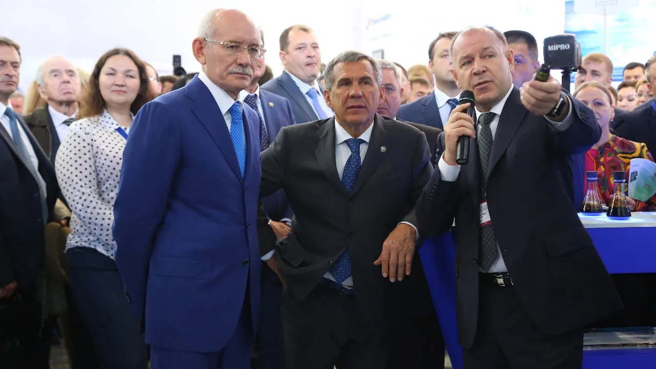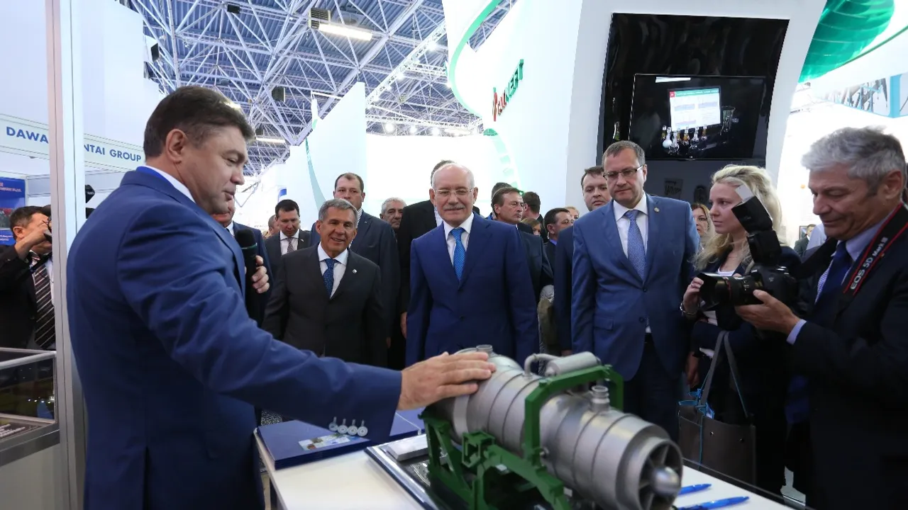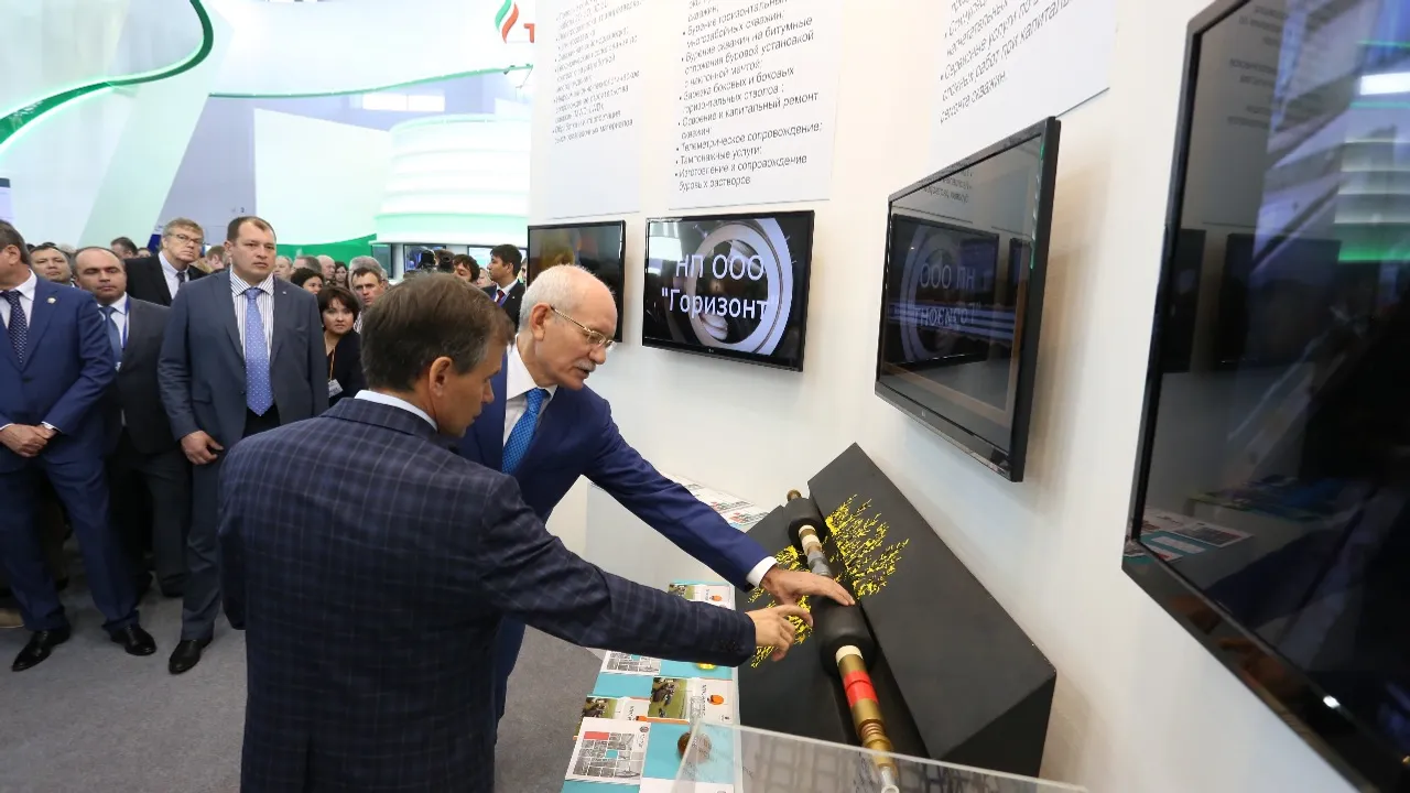 На выставке Рустэм Хамитов и Рустам Минниханов также ознакомились с технологией парогравитационного дренирования нефтяных скважин, работой мобильной установки по производству серополимерного бетона – перспективного строительного материала и другими проектами.