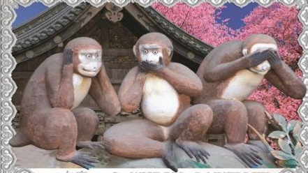 Буддистскую идею недеяния зла и отрешенности от неистинного символизирует монета Республики Танзания с изображением трех обезьян, одна из которых прикрывает лапами уши, вторая - глаза, третья - рот. Изображение является точной копией скульптуры XVII века из синтоистского святилища в японском городе Никко, считающейся первым художественным воплощением принципа: «Если я не вижу зла, не слышу о зле и не говорю о нем, то я защищен от него».
