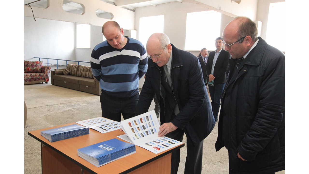 УФА, 14 апр 2016. /ИА «Башинформ», Александр Смирнов/. 14 апреля Глава Башкортостана Рустэм Хамитов в ходе рабочей поездки в Мечетлинский район посетил мебельную фабрику «Вега» в селе Большеустьикинское, основанную в 2000 году.