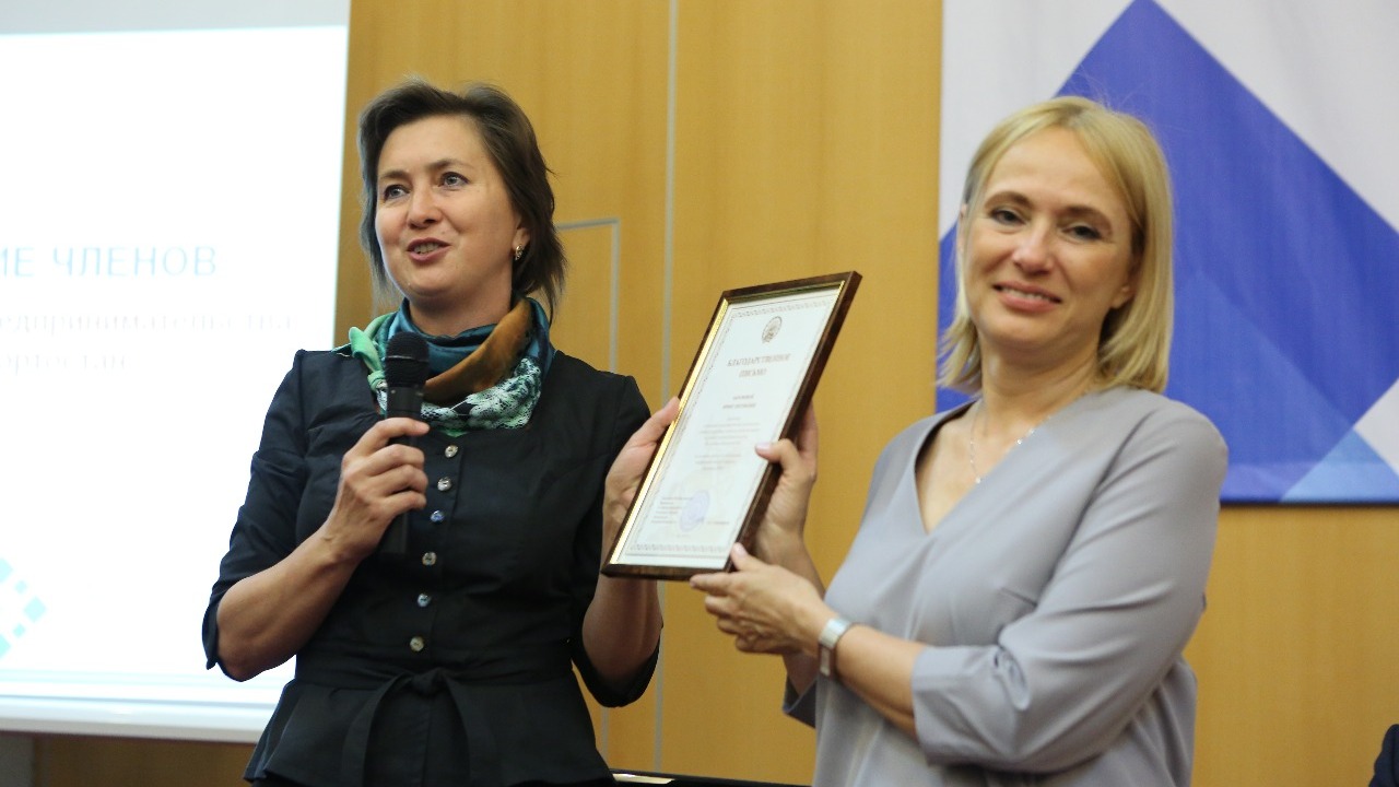 Алексей Щербацкий вручил Почетную грамоту АОП РБ главе администрации Кумертау Борису Беляеву, а советник отдела специальных программ Аппарата Правительства республики Ануза Шакирова вручила Благодарственное письмо Ирине Абрамовой за большой вклад в развитие агрофранчайзинга.