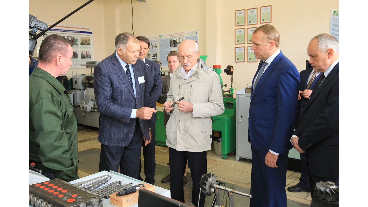 УФА, 3 сен 2016. /ИА «Башинформ», Александр Смирнов/. 3 сентября в Уфе Глава Башкортостана Рустэм Хамитов посетил экспериментальный участок восстановления узлов и агрегатов при кафедре технологии металлов и ремонта машин Башкирского государственного аграрного университета, которой в 1978–1988 годах заведовал его отец Заки Хамитов.