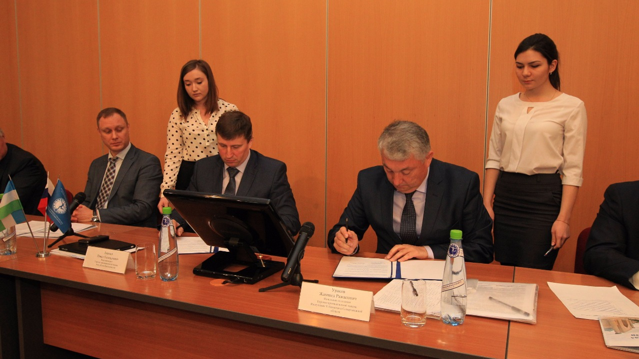 УФА, 16 марта 2017. /ИА «Башинформ», Альфия Аглиуллина/. Сегодня,16 марта, в ходе официального визита делегации Узбекистана, в Уфе состоялось подписание Соглашения о сотрудничестве между Торгово-промышленными палатами Башкортостана и Самаркандской области. Документ завизировали вице-президент ТПП РБ Павел Бармин и начальник отдела ТПП Самаркандской области Жамшед Ураков.
