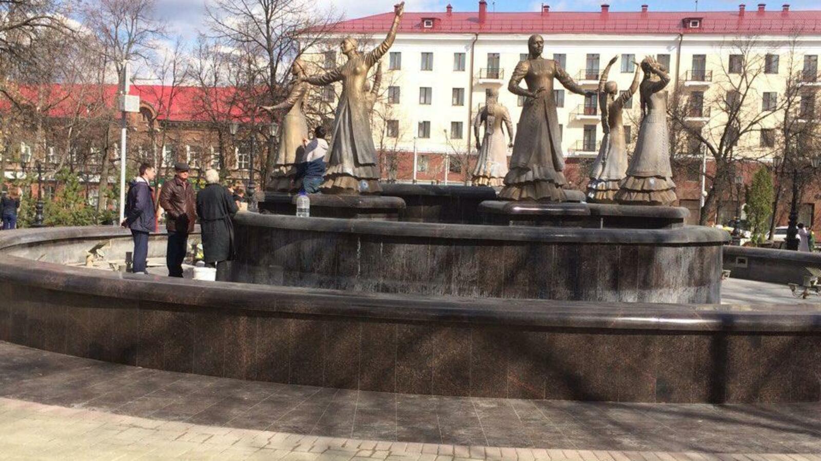 УФА, 26 апр 2017. /ИА «Башинформ», Ольга Муртазина/. В Уфе готовят к открытию поющий фонтан «Семь девушек», появившийся в сквере у оперного театра в июне 2015 года. Работники «Горзеленхоза» устанавливают двигатели, насосы, световое оборудование, вручную моют скульптуры. Запуск фонтана запланирован на 29 апреля. К этой дате сквер будет приведен в полный порядок, сообщили в администрации Кировского района столицы.