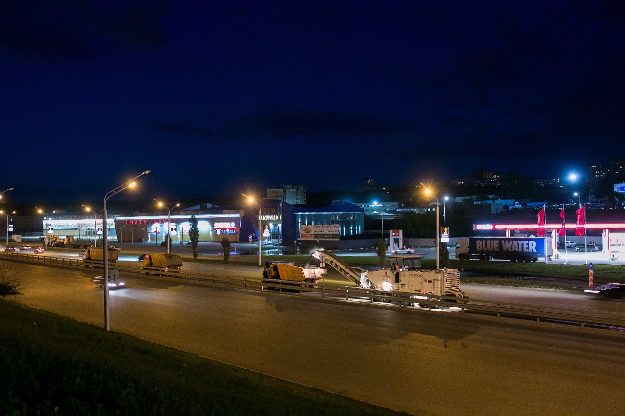 УФА, 27 июн 2017. /ИА «Башинформ», Ольга Муртазина/. На главной магистральной дороге в Уфимской агломерации — проспекте Салавата Юлаева, началась укладка первого слоя асфальта. В ночь на 26 июня уложено порядка 1,5 километра асфальта, ширина дороги — 8 метров. Дорожные строители работают по ночам. Ремонт по плану должен завершиться к концу июля.