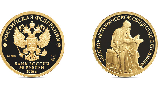 Второе место в номинации «Монетная классика» завоевала золотая монета «150-летие основания Русского исторического общества».