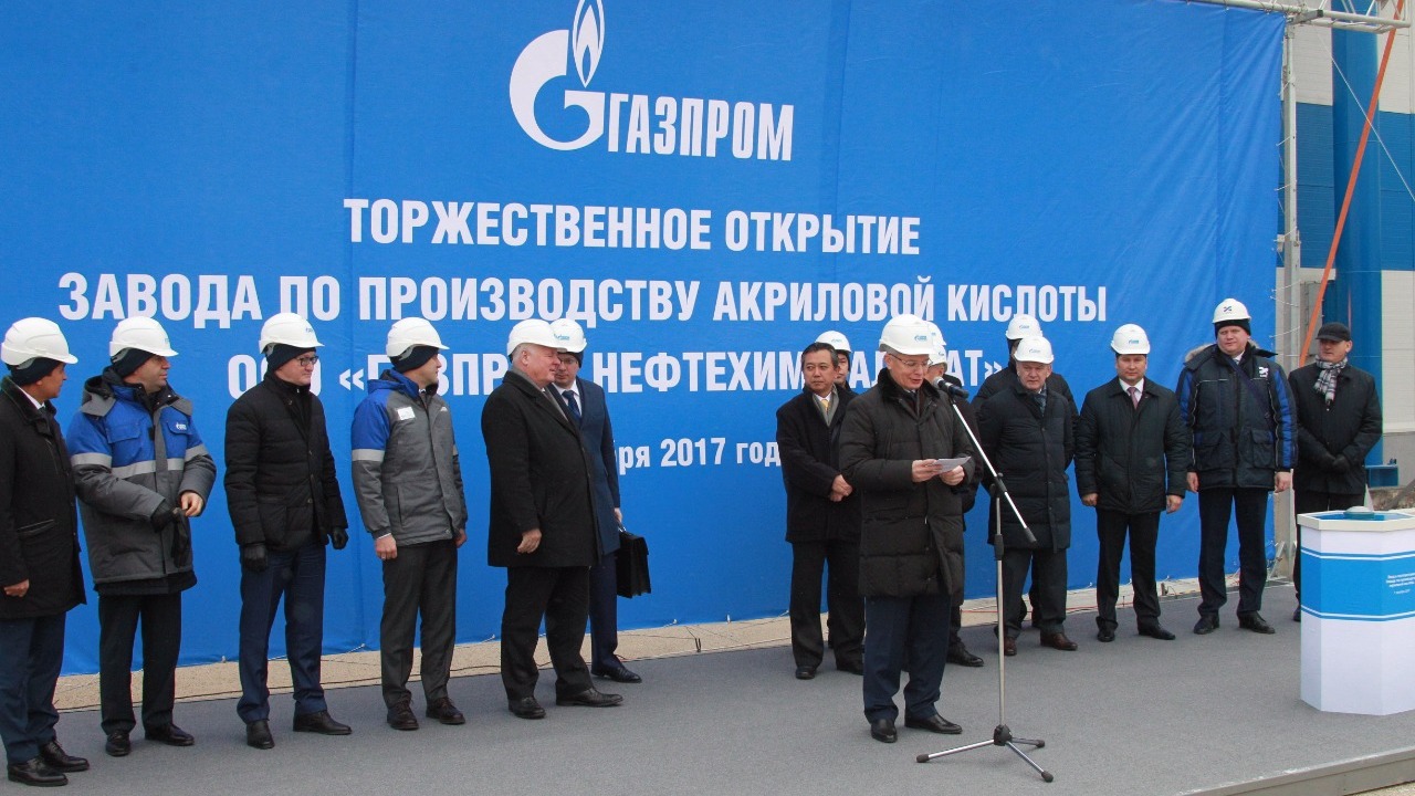 Как заявил, в свою очередь, зампредседателя правления ПАО «Газпром» Валерий Голубев, производство акриловой кислоты и бутилакрилата — самое высокотехнологичное.