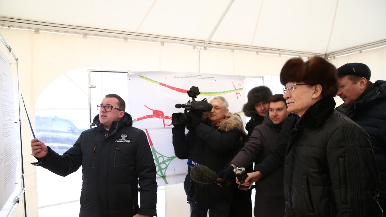УФА, 16 мар 2018. /ИА «Башинформ»/. Сегодня в Уфимском районе Глава Башкортостана Рустэм Хамитов ознакомился с ходом реконструкции федеральной трассы М-7 «Волга» и строительства автомобильной развязки на участке рядом с деревней Подымалово.
