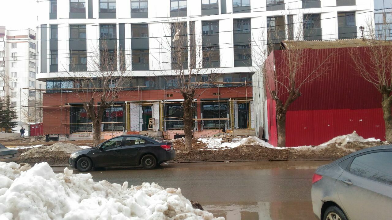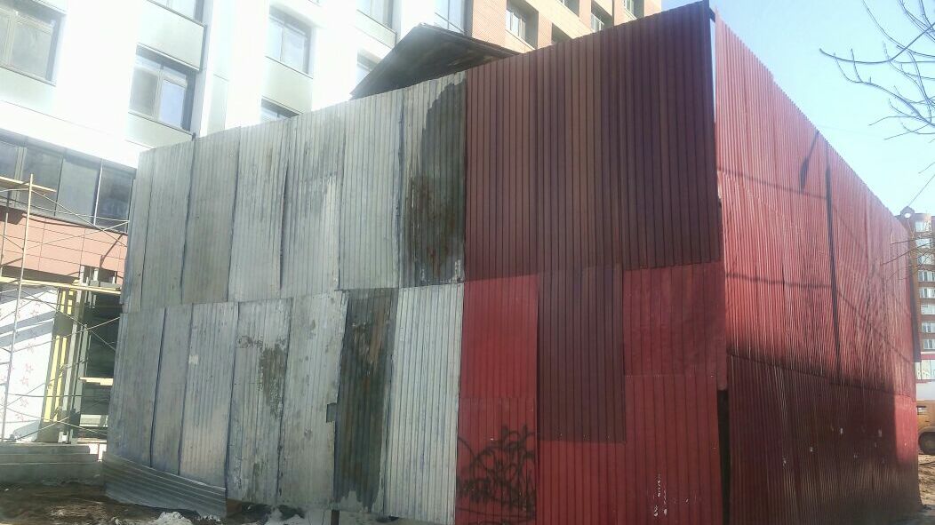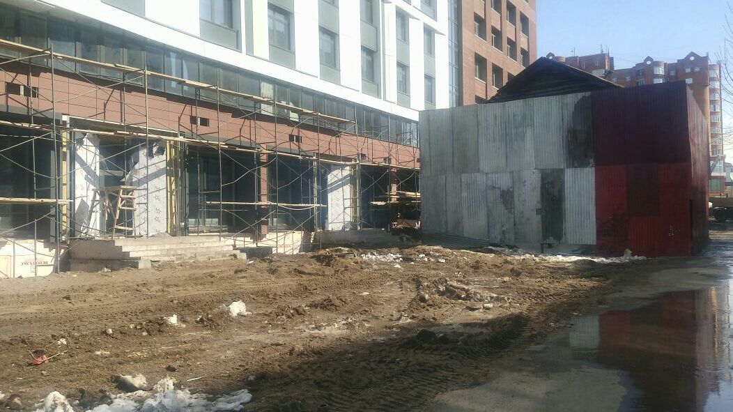 Сейчас объект обнесен железом. Вплотную за ним строители укладывают бетонные ступени входной группы новостройки.