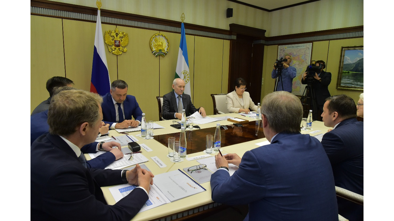 УФА, 3 май 2018. /ИА «Башинформ»/. Сегодня Глава Башкортостана Рустэм Хамитов встретился с руководством авиакомпании «Азимут» – председателем совета директоров Павлом Удодом и членом совета директоров Виталием Ванцевым. Стороны обсудили перспективы развития сотрудничества в области межрегиональных авиаперевозок.