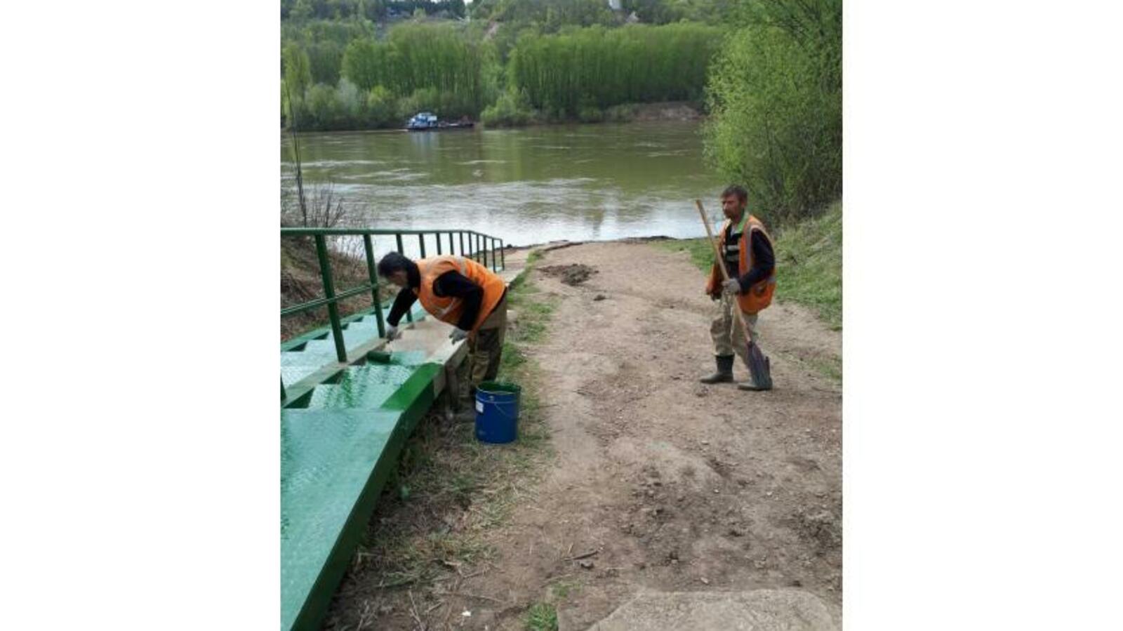 УФА, 17 май 2018. /ИА «Башинформ», Ольга Муртазина/. В Уфе коммунальщики благоустроили паромную переправу «Дудкино». Ею пользуется большое количество людей – за поселком Дудкино на другом берегу Уфимки находятся садовые общества.
