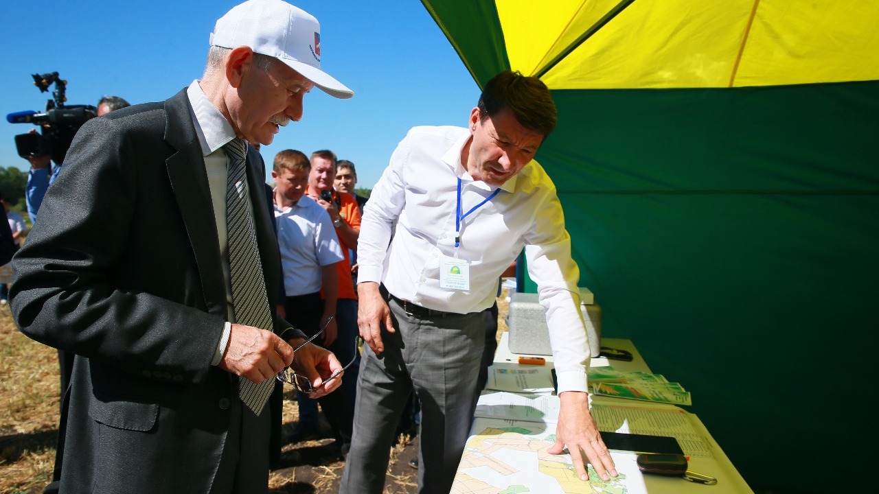 – Мы видим, что на полях хороший урожай. Надо его убрать с минимальными потерями, – подчеркнул руководитель республики.В ходе мероприятия Рустэм Хамитов провёл круглый стол, посвящённый производству и реализации сельскохозяйственной продукции, а также осмотрел выставку сельскохозяйственной техники отечественного и зарубежного производства. Представители группы компаний «Ростсельмаш» продемонстрировали руководителю региона образцы зерноуборочных комбайнов, тракторов и другой техники, которая используется в том числе и в Башкортостане. На экспозиции были представлены как уже известные и популярные в республике линейки, так и новейшие модели – например, трактор, сборка которого была полностью перенесена в Россию из Канады.