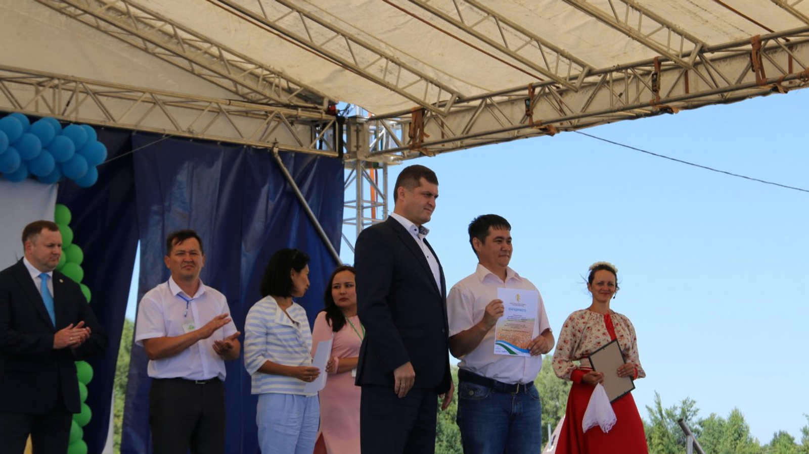 УФА, 1 авг 2018. /ИА «Башинформ», Алим Фаизов/. На прошедшем накануне зональном семинаре-совещании по организации уборки сельскохозяйственных культур «День поля-2018» по южной лесостепной зоне в Кармаскалинском районе, в котором принял участие Глава Башкортостана Рустэм Хамитов, были награждены победители и призеры республиканского конкурса фотографий и видеороликов «Сев в объективе» за лучшее освещение посевных работ этого года.