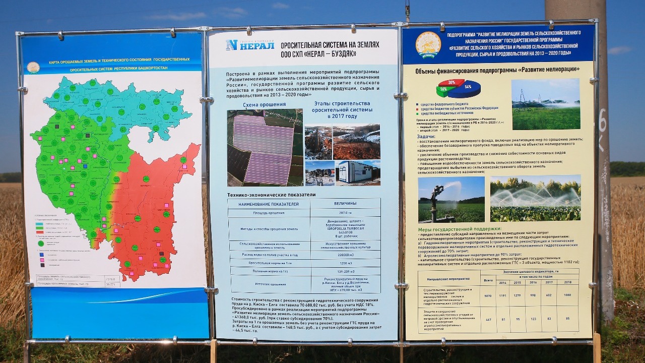 Первый заместитель министра сельского хозяйства РБ Рамил Нуриахметов рассказал о перспективах развития программы мелиорации на территории республики. В этом году на получение субсидии по программе мелиорации было подано около 30 заявок. Вместе с тем у большинства сельхозпроизводителей нет свободных средств для установки систем орошения.