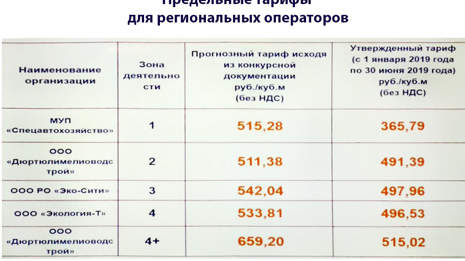 УФА, 21 дек 2018. /ИА «Башинформ»/. В Башкирии установлены тарифы на деятельность регоператоров по обращению с ТКО. Об этом сообщила на круглом столе в Госсобрании-Курултае РБ руководитель Госкомитета РБ по тарифам Светлана Бурдюк. Их удалось снизить на 4 – 29 процентов. Изменения отражены в таблице: