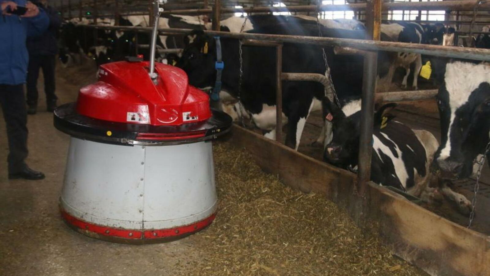 УФА, 24 дек 2018. /ИА «Башинформ»/. Робот-скотник на ферме в СПК «Красная Башкирия» произвел фурор среди участников зонального семинара Минсельхоза РБ. Машина двигается по проходу и пододвигает к кормушкам разбросанные животными корма. На базе предприятия реализуется приоритетный инвестпроект по строительству роботизированной фермы общей стоимостью порядка 479 млн рублей. В данный момент идет строительство двух тентовых коровников, где животные будут содержаться без привязи. Проектом запланировано приобретение 800 голов коров черно-пестрой породы. Их будут обслуживать доильные роботы и роботы навозоудаления, которые поставит фирма Lely. Уже сейчас на ферме работает автоматический двигатель кормов.