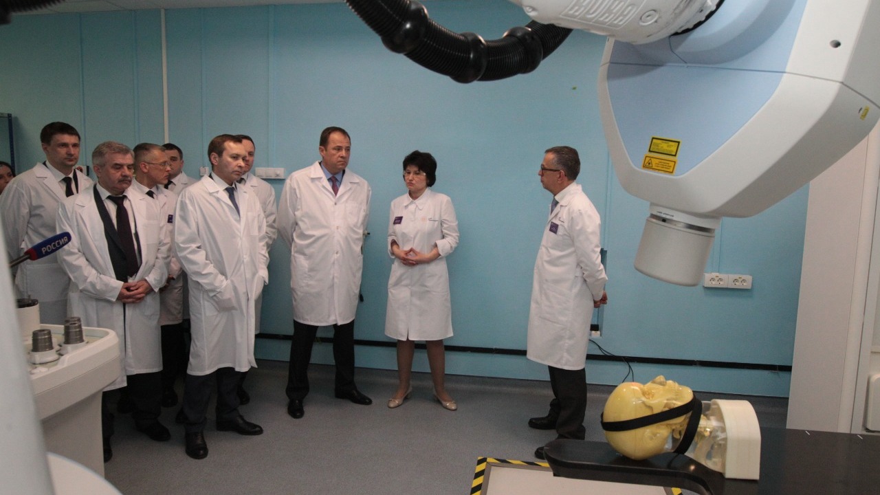 Игорь Комаров ознакомился с работой участка циклотронно-радиохимического комплекса, гостям показали, как работают ПЭТ-сканер и «Кибер-Нож». В центре ядерной медицины сегодня действует уникальная для России система производства, контроля качества и доставки радиофармпрепаратов. Они позволяют диагностировать опухоли молочной железы, легкого, предстательной железы, меланомы. Производственный центр в Уфе ежедневно изготавливает до 70 доз лекарственных препаратов.