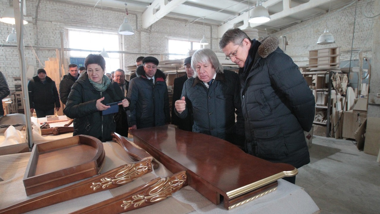 Мощность предприятия - переработка 25 тысяч кубометров древесины в год. Учредитель компании Виктор Кочубей провел экскурсию по производственным цехам предприятия и ознакомил с полным циклом производства мебели. «Мы выпускаем по польской технологии более 240 видов мебели классического стиля. Начинали 10 лет назад, и мало кто верил, что наша башкирская мебель будет пользоваться спросом у покупателей. Поэтому мы в начале продавали свою продукцию за пределами республики, сделали наш бренд узнаваемым, а потом пришли на рынок Башкортостана. Наша офисная мебель есть во многих крупных компаниях страны, она продается также в Казахстане и Армении. И приятно, что ее используют даже для оформления телевизионных программ Первого канала. Наша основная отличительная особенность в том, что мы мебель производим из массива дерева», - рассказал руководителю региона Виктор Кочубей. На предприятии в настоящее время работают 120 человек. Помимо мебели, здесь также производится погонажные изделия (евровагонка, шпунтованные доски, плинтуса). Радий Хабиров оценил качество производимой мебели и пожелал предприятию успехов в его деятельности.