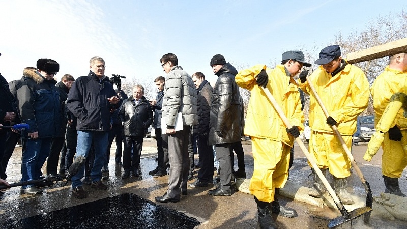 «В день надо устранять как минимум 500 ям, люди ездят на машинах, оставляют свои колеса в ямах, ломают автомобили, из-за ям происходят ДТП, зачастую даже со смертельным исходом. Скоро дачный сезон откроется, наши люди массово поедут в сады. Работы должны идти быстро и качественно», - сказал Радий Хабиров.Руководитель Башкортостана поручил Госкомтрансу до 1 апреля завершить разработку простого и эффективного мобильного приложения по ямочному ремонту. Дорожное ведомство также должно собрать сведения со всех муниципалитетов, сколько ям было устранено в прошлом году, умножить их на два и дать задания главам городов и районов разработать графики по ямочному ремонту по всей республике. Радий Хабиров возьмет проведение этих работ под личный контроль, чтобы не было приписок со стороны глав и дорожных служб. Ямочный ремонт в регионе должен быть завершен к 1 июня.