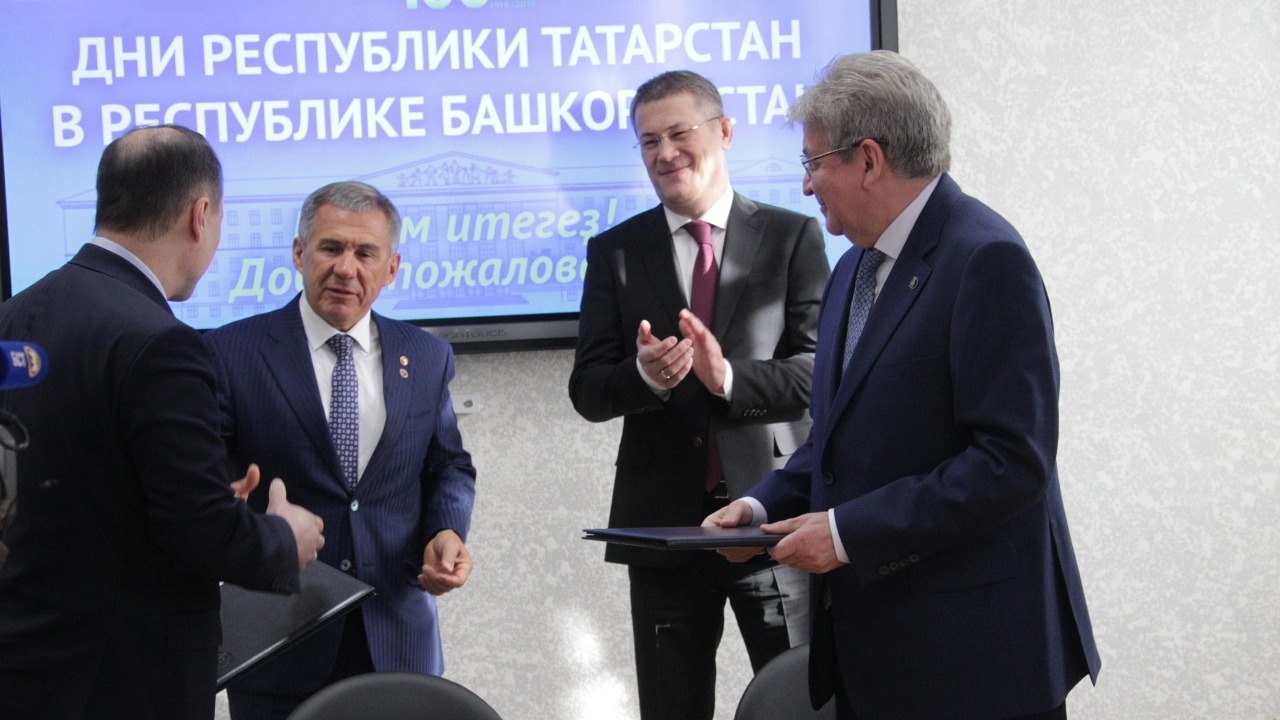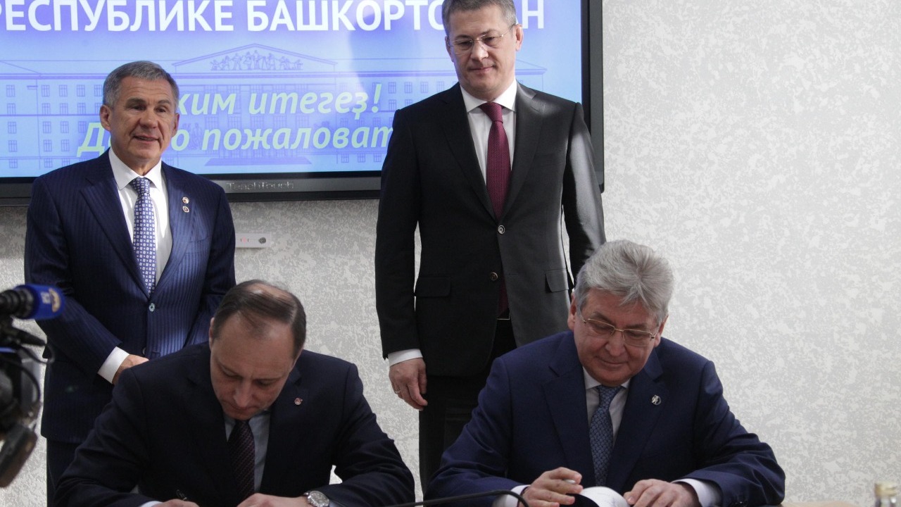 В присутствии врио Главы Башкортостана и Президента Татарстана подписаны соглашения о сотрудничестве между УГНТУ и Казанским национальным исследовательским технологическим университетом, Казанским государственным энергетическим университетом, Альметьевским государственным нефтяным институтом, Университетом Иннополис.