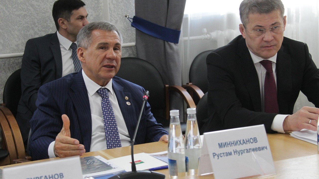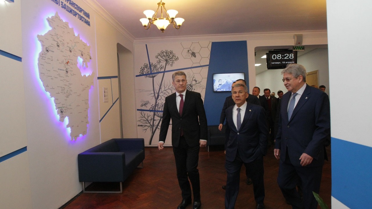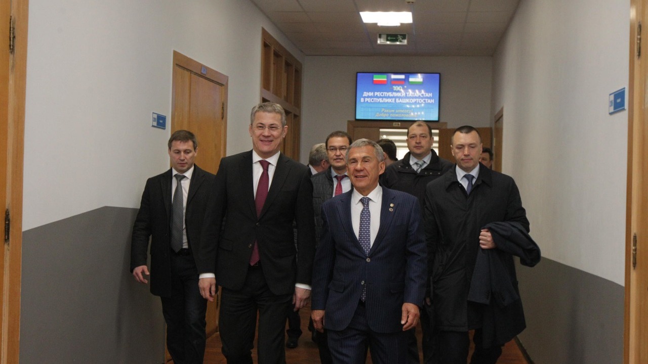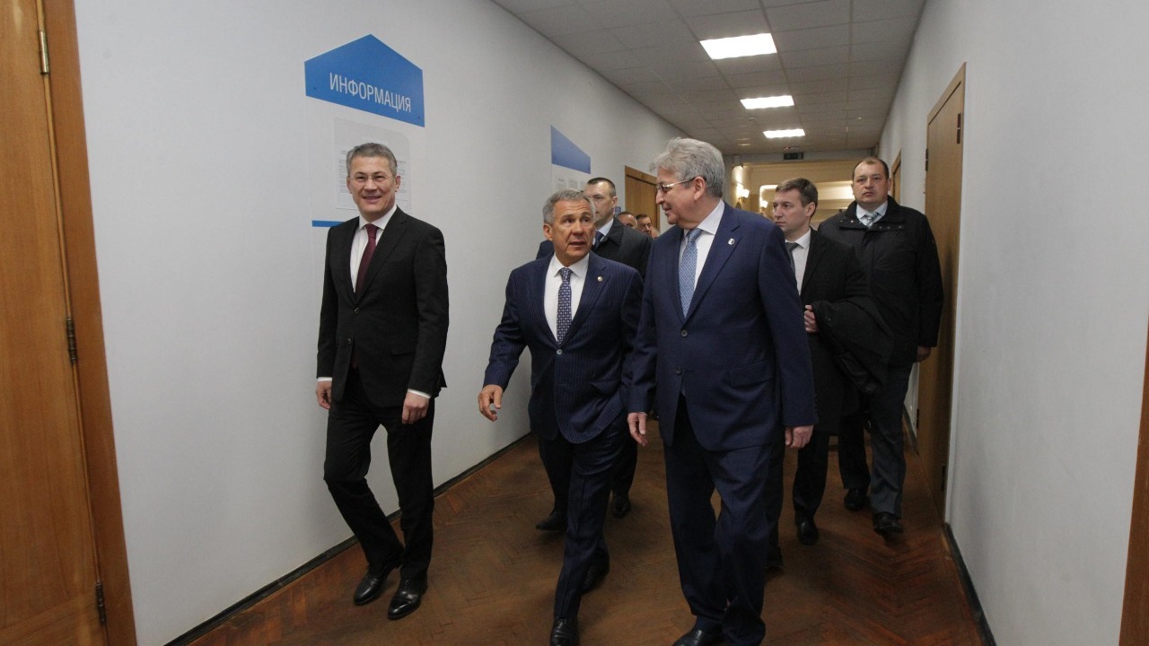 УФА, 18 апр 2019. /ИА «Башинформ»/. Сегодня, в рамках Дней Республики Татарстан в Республике Башкортостан, руководители регионов Радий Хабиров и Рустам Минниханов посетили Уфимский государственный нефтяной технический университет.
