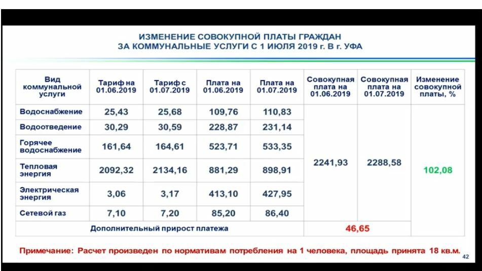 УФА, 24 июн 2019. /ИА «Башинформ»/. В Уфе прирост платежа за коммунальные услуги составит в среднем 46,65 рублей, сообщила председатель Госкомитета по тарифам Светлана Бурдюк на оперативном совещании в правительстве Башкирии. С 1 июля в республике тарифы повышаются на 2%. Аналогичное повышение еще в восьми регионах ПФО. Пензенская область и Пермский край подняли тарифы на 4%, Татарстан на 3%, Кировская область на 2,8%.