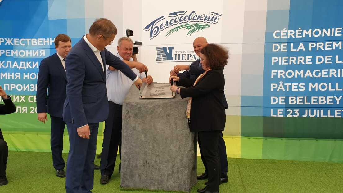 В торжественной церемонии запуска строительства нового предприятия принял участие руководитель Башкортостана Радий Хабиров, который вместе с послом Франции в России Сильви Берманн и другими гостями осмотрел действующее производство Белебеевского молкомбината. Генеральный директор предприятия Евгений Линкевич рассказал, что сейчас здесь трудятся 750 человек, на заводе производится 23 вида сыров. Ежегодно комбинат отчисляет в бюджет республики до 500 млн рублей налогов. Гости осмотрели цеха, где идет производство сыров, их дозревание и упаковка для дальнейшей отправки в торговые сети
