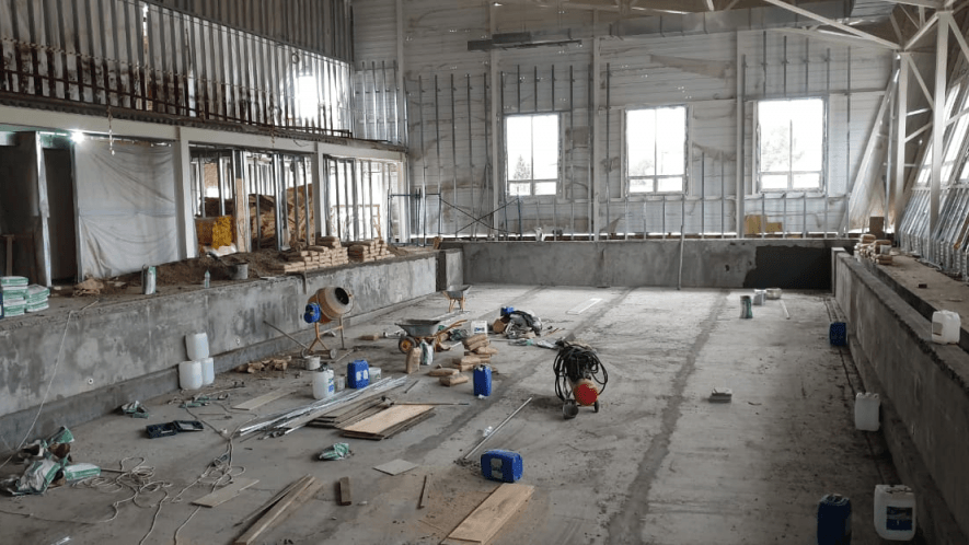 Бассейн представляет собой трехэтажное здание, включая технический подпол с инженерным оборудованием. На первом этаже будут располагаться зал с бассейном, вестибюль, гардероб, кабинет врача, административные помещения, кабинеты для тренеров, комнаты для персонала, а также раздевалки, душевые, лаборатория, технические и другие помещения.