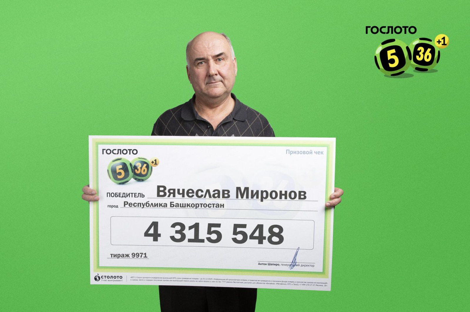 УФА, 2 сен 2019. /ИА «Башинформ»/. Житель Башкортостана Вячеслав Миронов выиграл в лотерею более 4,3 млн рублей. Как сообщили агентству «Башинформ» в пресс-службе «Столото», мужчина много лет участвует в лотереях и иногда выигрывает суммы до 70 тысяч рублей. В этот раз счастливый билет превратил его в миллионера.