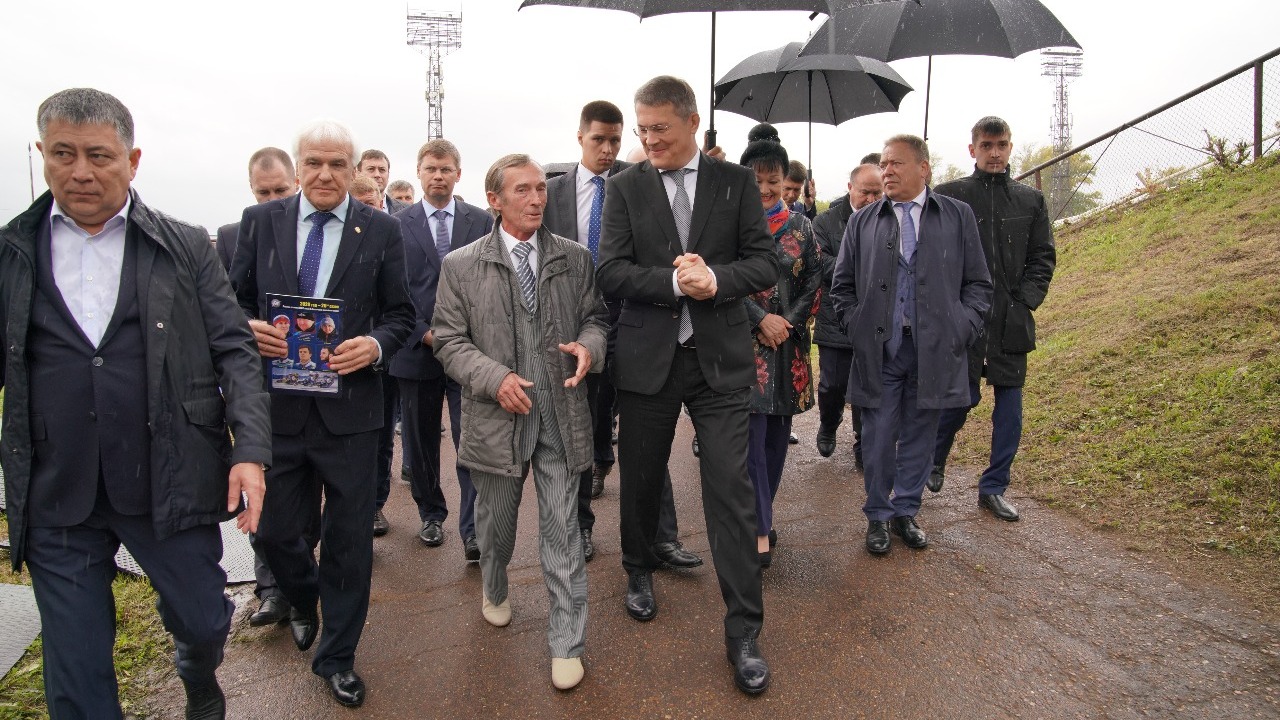 Радию Хабирову рассказали, что здесь по проекту планируют новые трибуны на 8400 посадочных мест. На спортивной площадке будут футбольное поле и беговые дорожки, которые зимой планируют заливать водой, чтобы там проводить соревнования по мотогонкам на льду. В подтрибунных помещениях может появиться легкоатлетический манеж, центр спортивных единоборств, музей истории и спортивной славы. Центр технических видов спорта имени Габдрахмана Кадырова, базирующийся на стадионе «Строитель», получит современные просторные боксы для техники, мастерские и административные помещения.