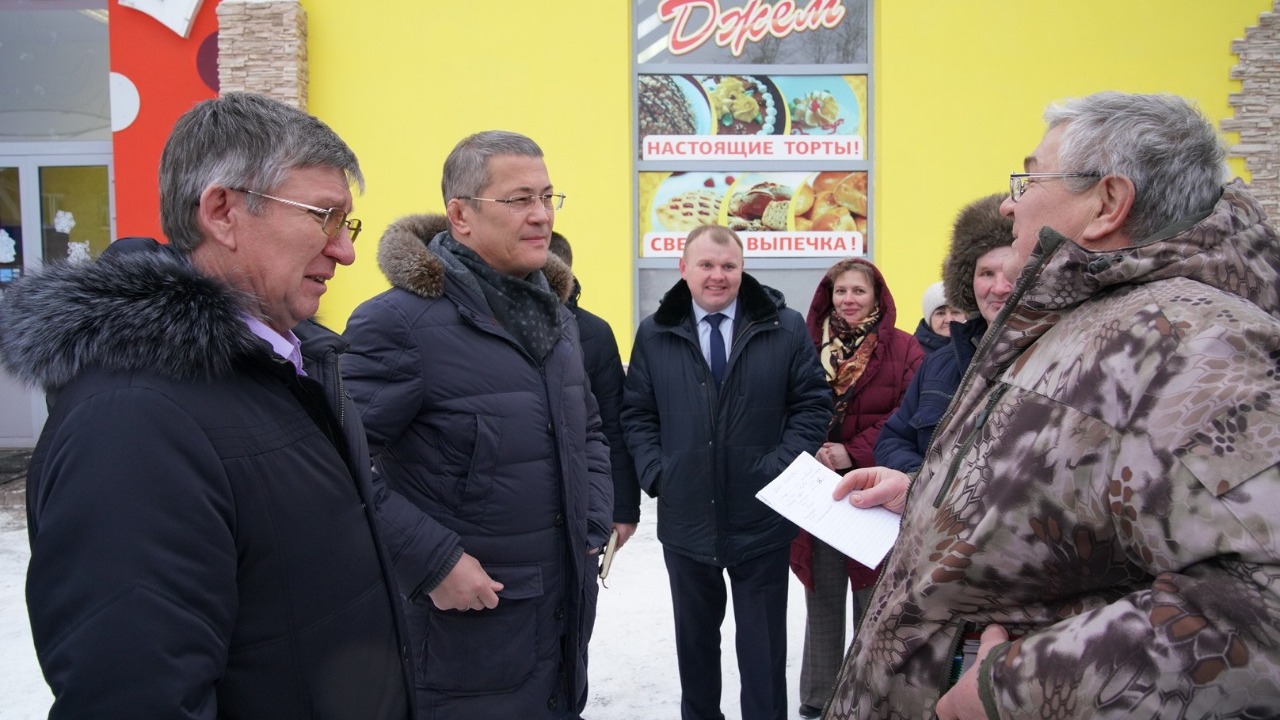 На улице, рядом с предприятием, глава Башкортостана пообщался с местными жителями. Разговор шел о рабочих местах, о благоустройстве населенных пунктов, строительстве ФАПов. Жители села Краснохолмский также попросили Радия Хабирова посодействовать в вопросе строительства бассейна. Глава Башкортостана рассказал, что в республике принята программа по строительству бассейнов в 16 районах, где их не было ранее, Калтасинский район в их числе. Жители села поддержали решение властей республики по поводу запрета алкоголя в новогодние праздники и при этом попросили, чтобы к ним почаще приезжали с концертами артисты и творческие коллективы из Уфы. Радий Хабиров сказал, что даст поручение министру культуры по проработке этого вопроса.